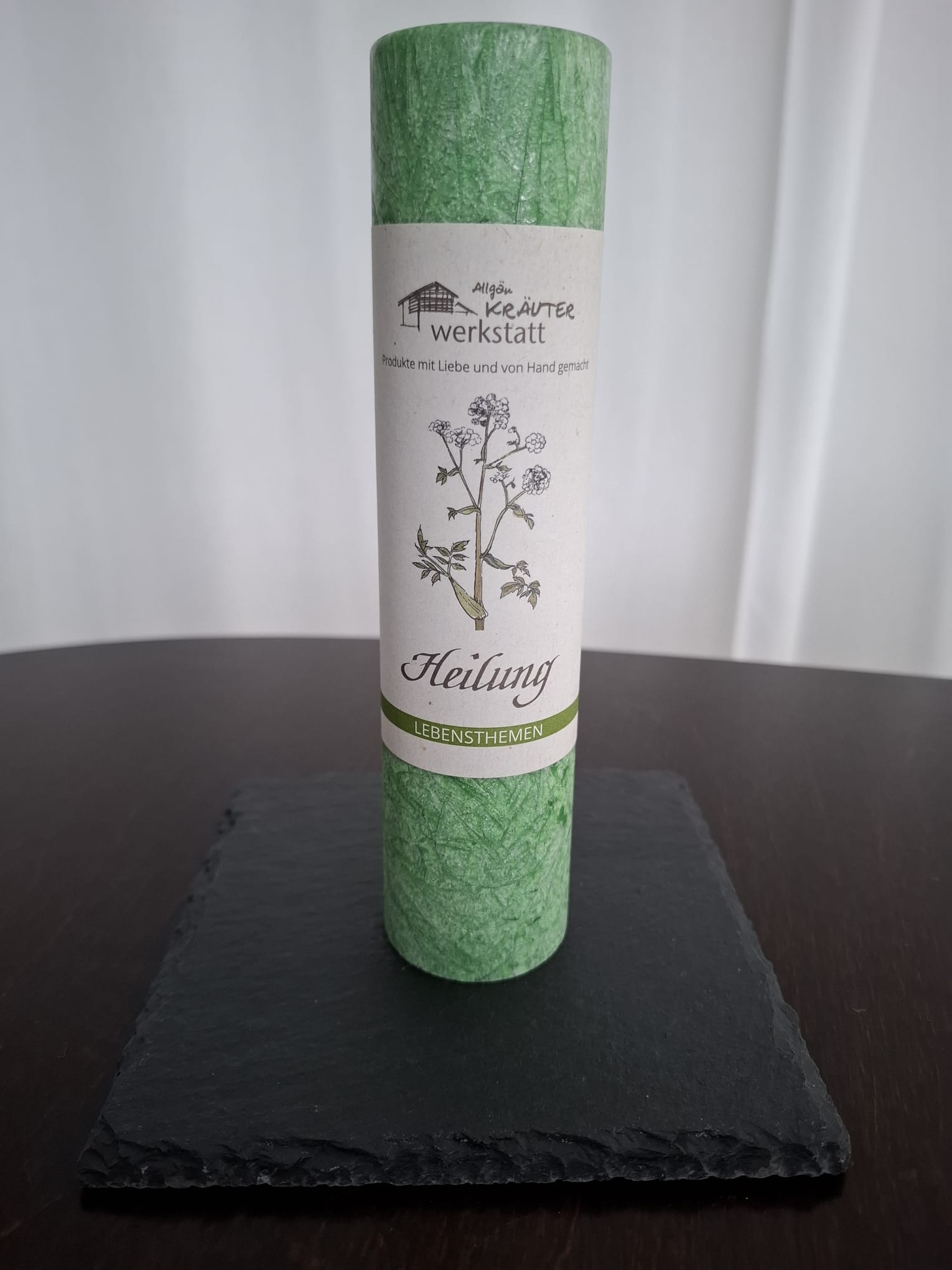 Die Heilkräuterkerzen werden liebevoll und von Hand in einer kleinen Manufaktur in den Allgäuer Alpen gegossen. Jede Kerze besteht aus 100% pflanzlichem Stearin und einer auf das jeweilige Lebensthema abgestimmten Mischung aus Pflanzen- oder Harzauszügen, Heilkräuteressenzen, ätherischen Ölen und bzw. oder Tinkturen. Die Pflanzen bzw. Heilkräuter der Auszüge stammen überwiegend aus eigenem Anbau oder Wildsammlung, ansonsten aus kontrolliert biologischem Anbau.