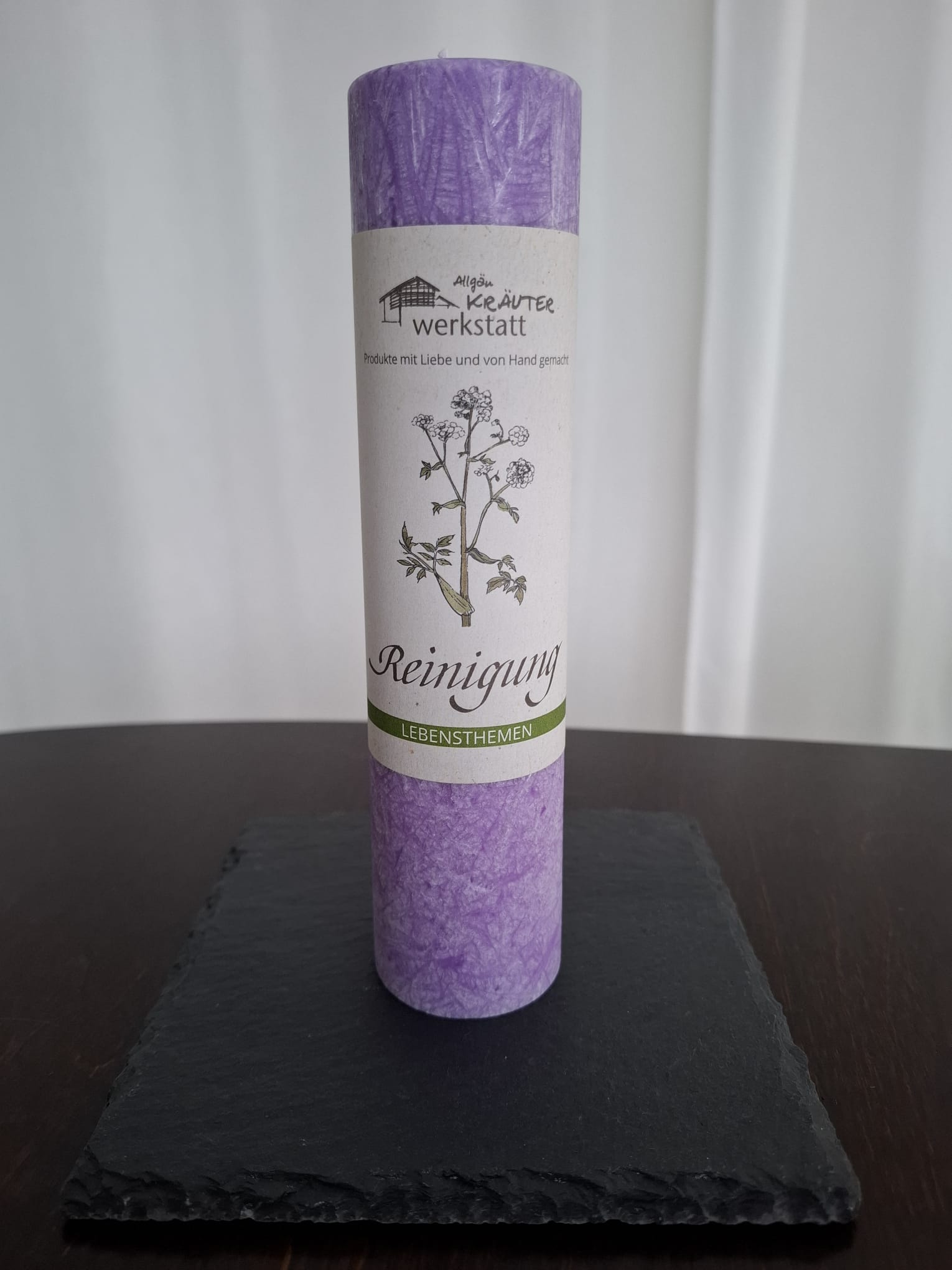Die Natur schenkt uns viele Pflanzen mit ihren reinigenden Aspekten ~ sie befreien Räume und Aura von negativen, geballten Energien (u.a.Streit) und schaffen ein wohliges Raumklima. Sie klären & erfrischen unseren Geist, unterstützen uns beim Reinigen und Bereinigen von eingefahrenen und erstarrten Gedankenmustern. Es begleiten uns beim Entzünden dieser Kerze ~ Beifuss, Salbei, Kampfer, Ysop, Königskerze und Pfefferminze.