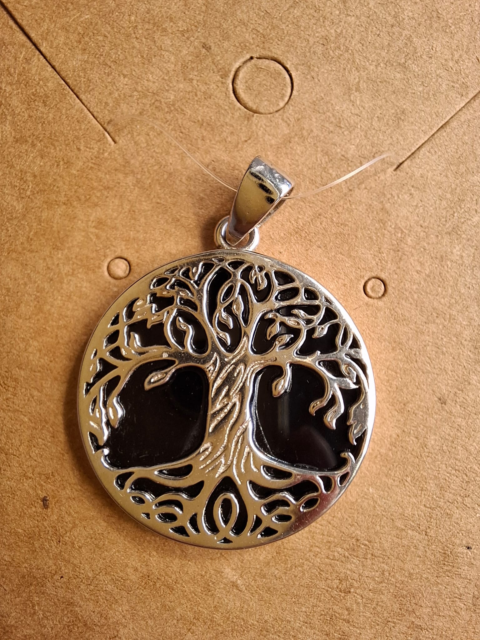 Anhänger Silber 925 Lebensbaum auf Onyx 26mm