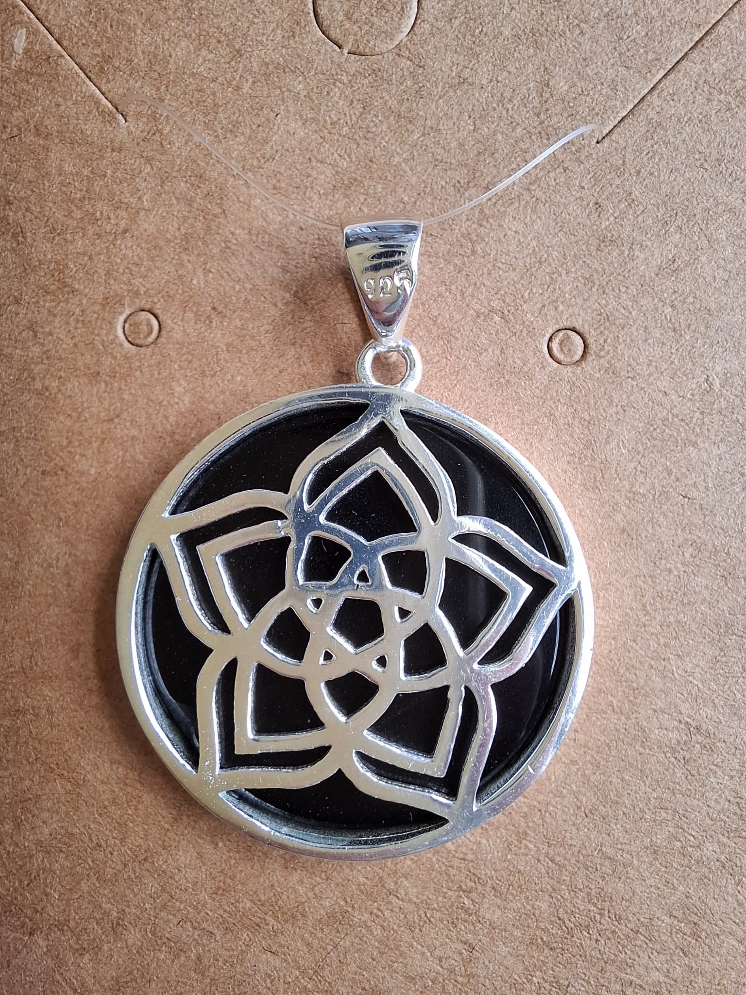 Anhänger Silber 925 Venusblume auf Onyx 24mm