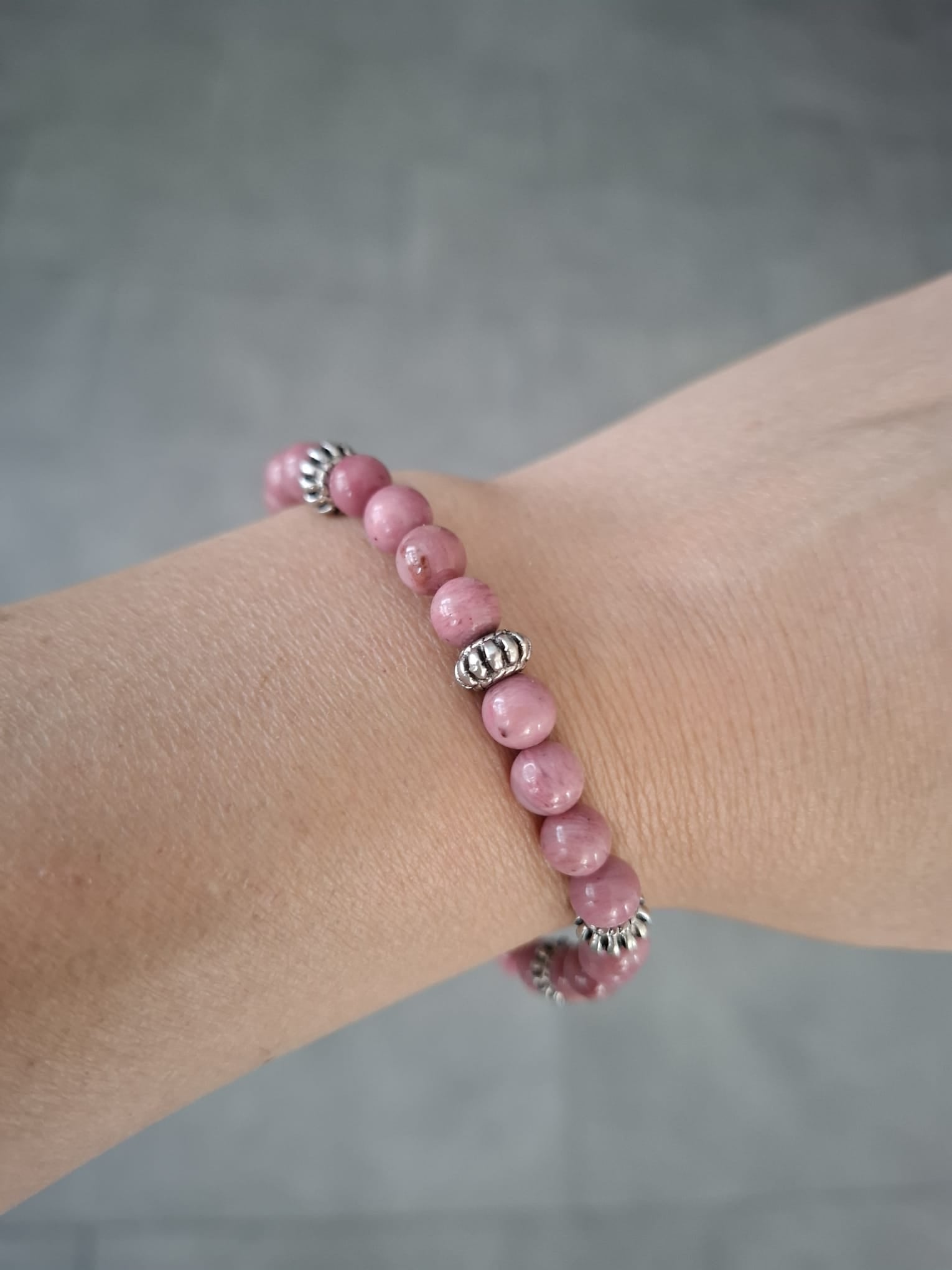 Die Armkette aus echtem Rhodonit ist nicht nur ein elegantes Schmuckstück, sondern auch eine kraftvolle Heilsteinkette.