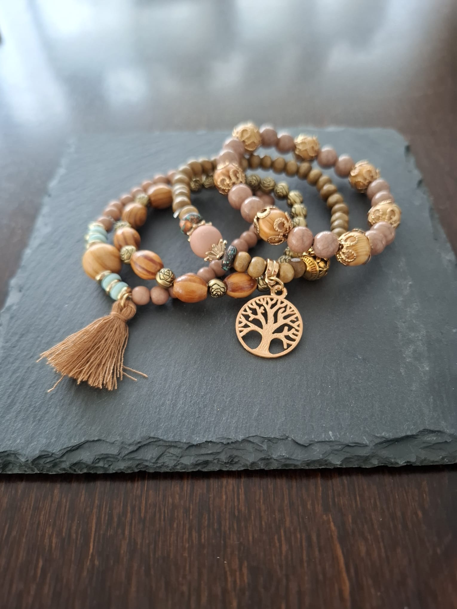 Armband Baum des Lebens braun, Holz- und Resinperlen, 6cm flexibel