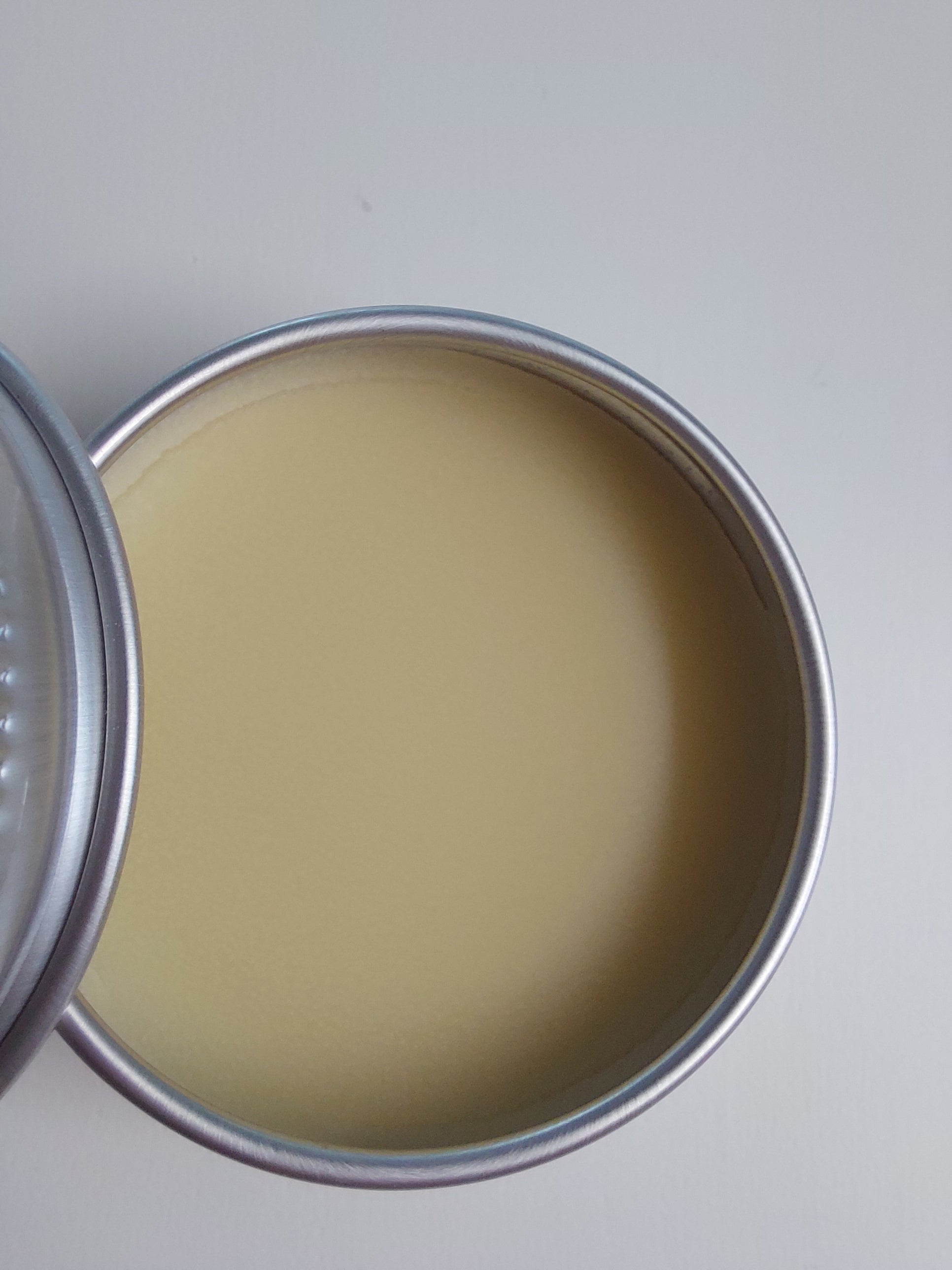 Enthält: Bienenwachs, Kokosöl, Olivenöl, Johannisblütenöl, Sheabutter
