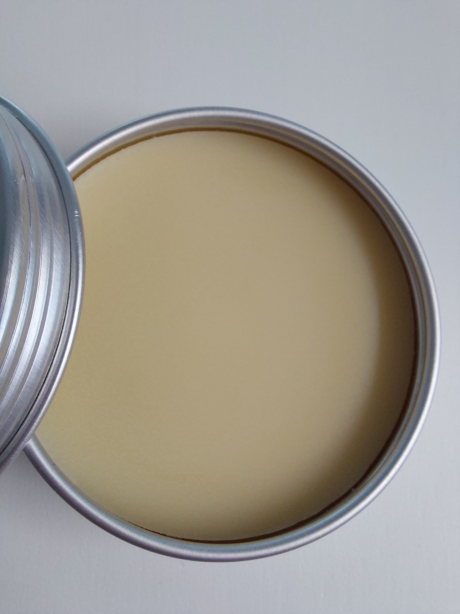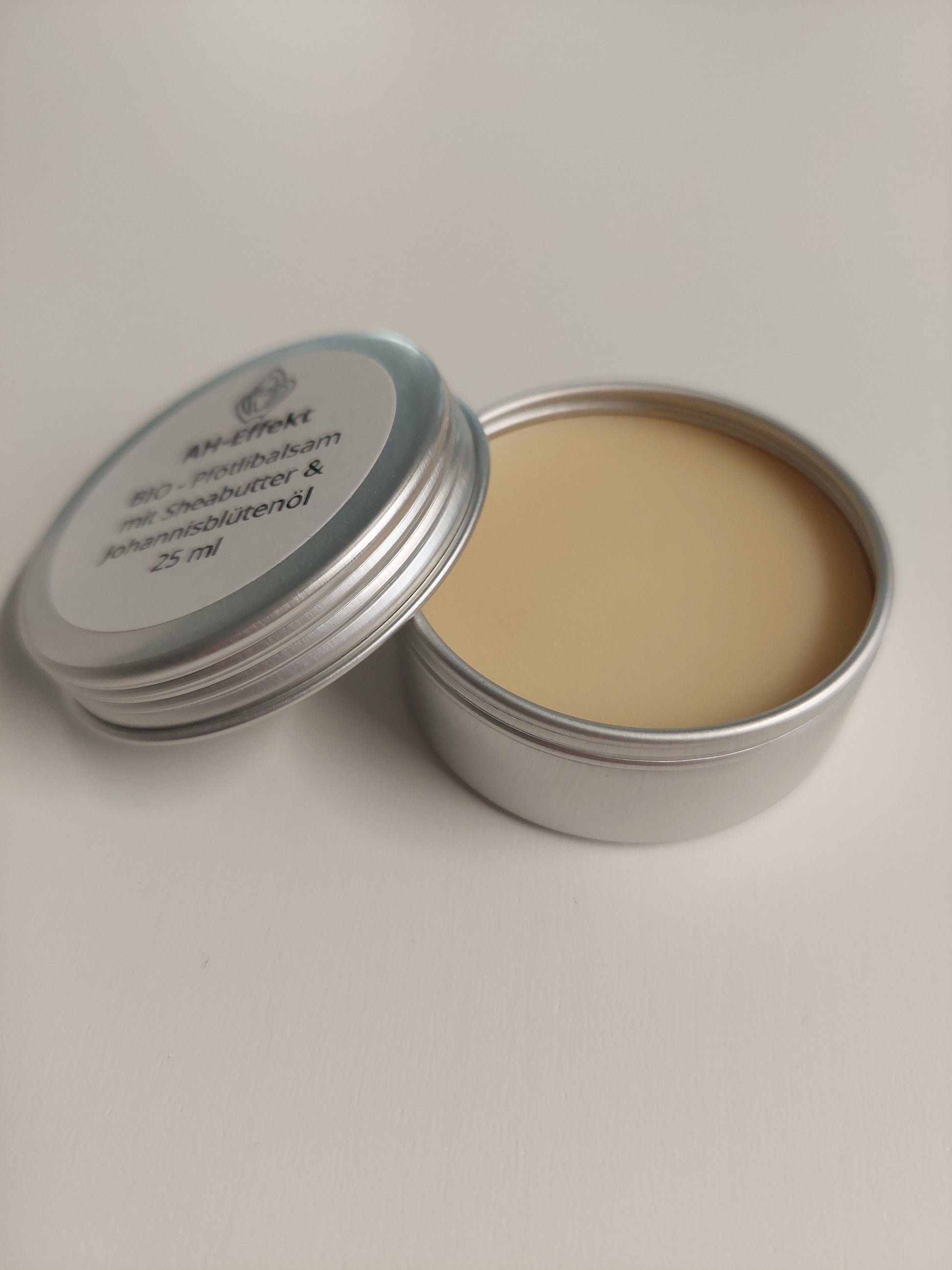 Enthält: Bienenwachs, Kokosöl, Olivenöl, Johannisblütenöl, Sheabutter