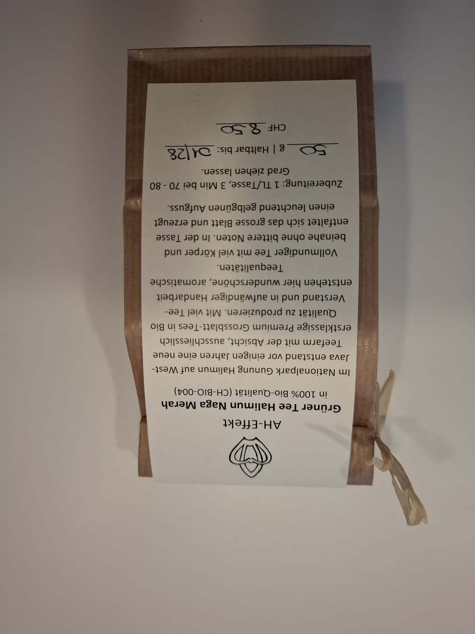 Vollmundiger Tee mit viel Körper und praktisch ohne bittere Noten. In der Tasse entfaltet sich das grosse Blatt und erzeugt einen leuchtend gelbgünen Aufguss.