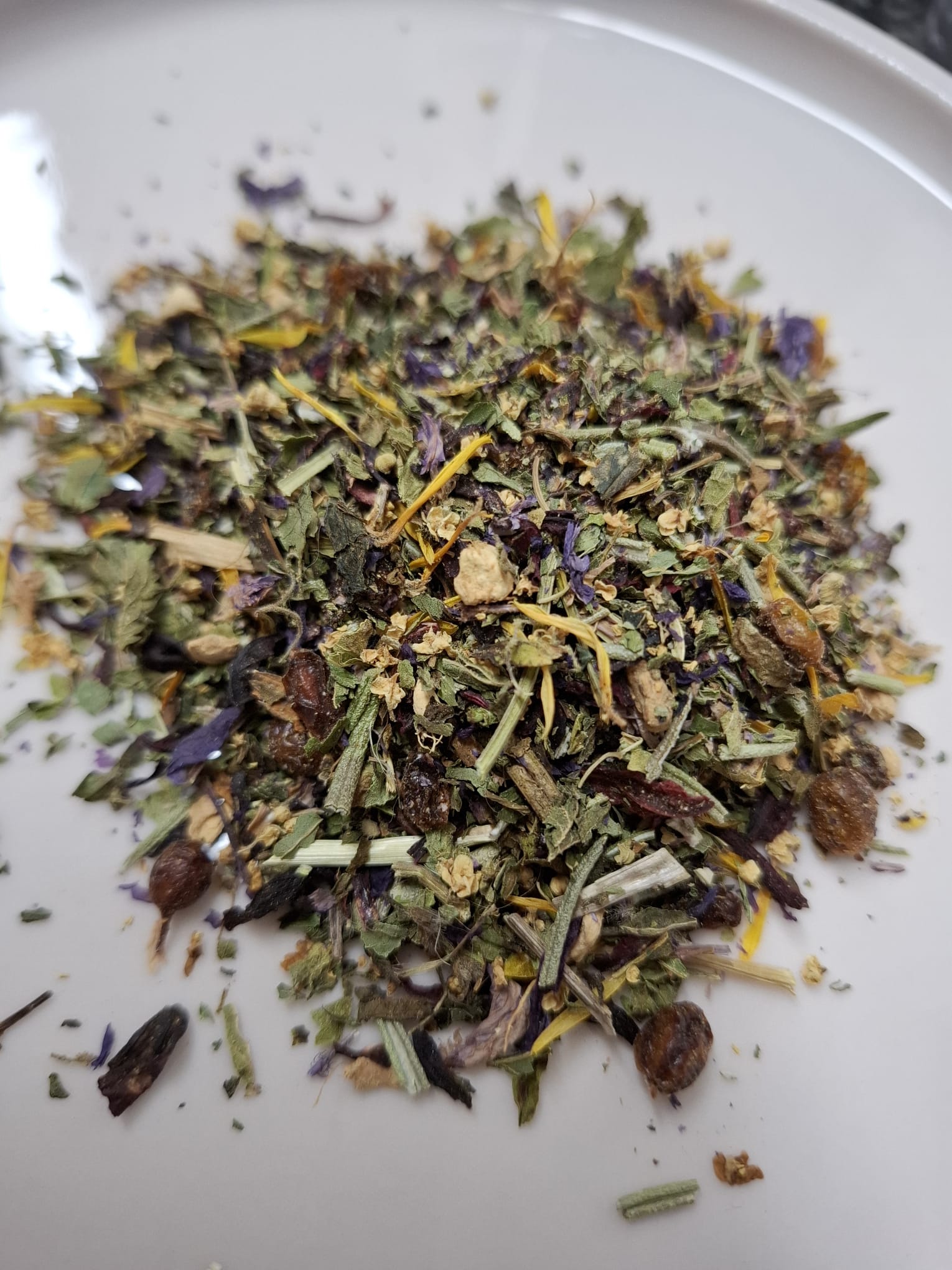 Enthält: Pfefferminze, Brennnessel, Hibiskus, Ingwer, Sanddornbeeren, Rosmarin, Malve, Ringelblume, Holunderblüten