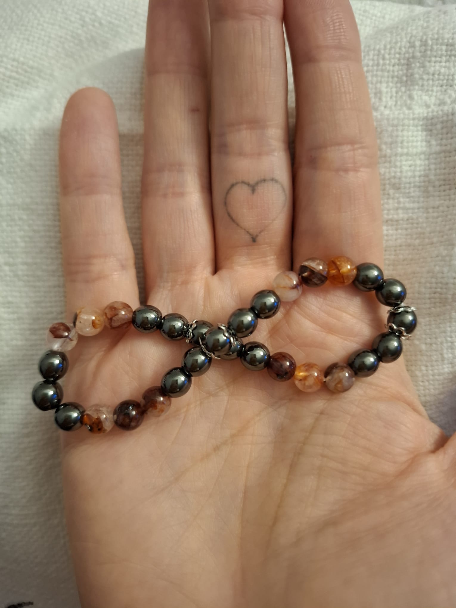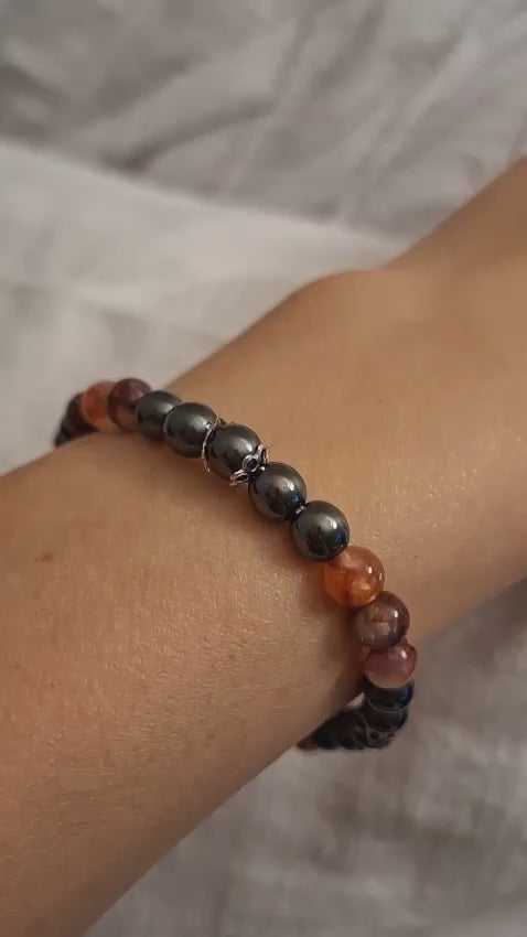 Hämatit & roter Tangerine Quarz mit silbernen Elementen