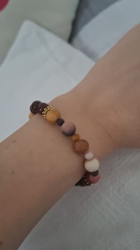 Diese Kombination vereint Erdverbundenheit, Lebensenergie & natürliche Stabilität. Mookait bringt die lebendige Farb- & Erdenergie Australiens ein, während Holz die warme, organische Kraft der Natur symbolisiert. Zusammen entsteht eine sanfte, natürliche & zugleich kraftvolle Erd- & Lebensenergie. Wachse in deinem natürlichen Rhythmus, bleibe flexibel & geerdet. Lebe deine Kraft mit Freude & Stabilität. Zusammen fördern sie: Erdverbundenheit ohne Schwere, Lebendigkeit ohne Hektik, Stabilität ohne Starrheit, Wachstum ohne Druck. Diese Kombination ist besonders harmonisch für Menschen, die: mehr natürliche Ruhe, gleichzeitig aber auch mehr Vitalität & eine stabile Verbindung zu sich selbst suchen.