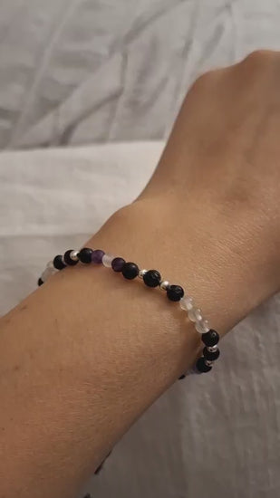 Prehnit, Fluorit & Lavastein mit silbernen Elementen