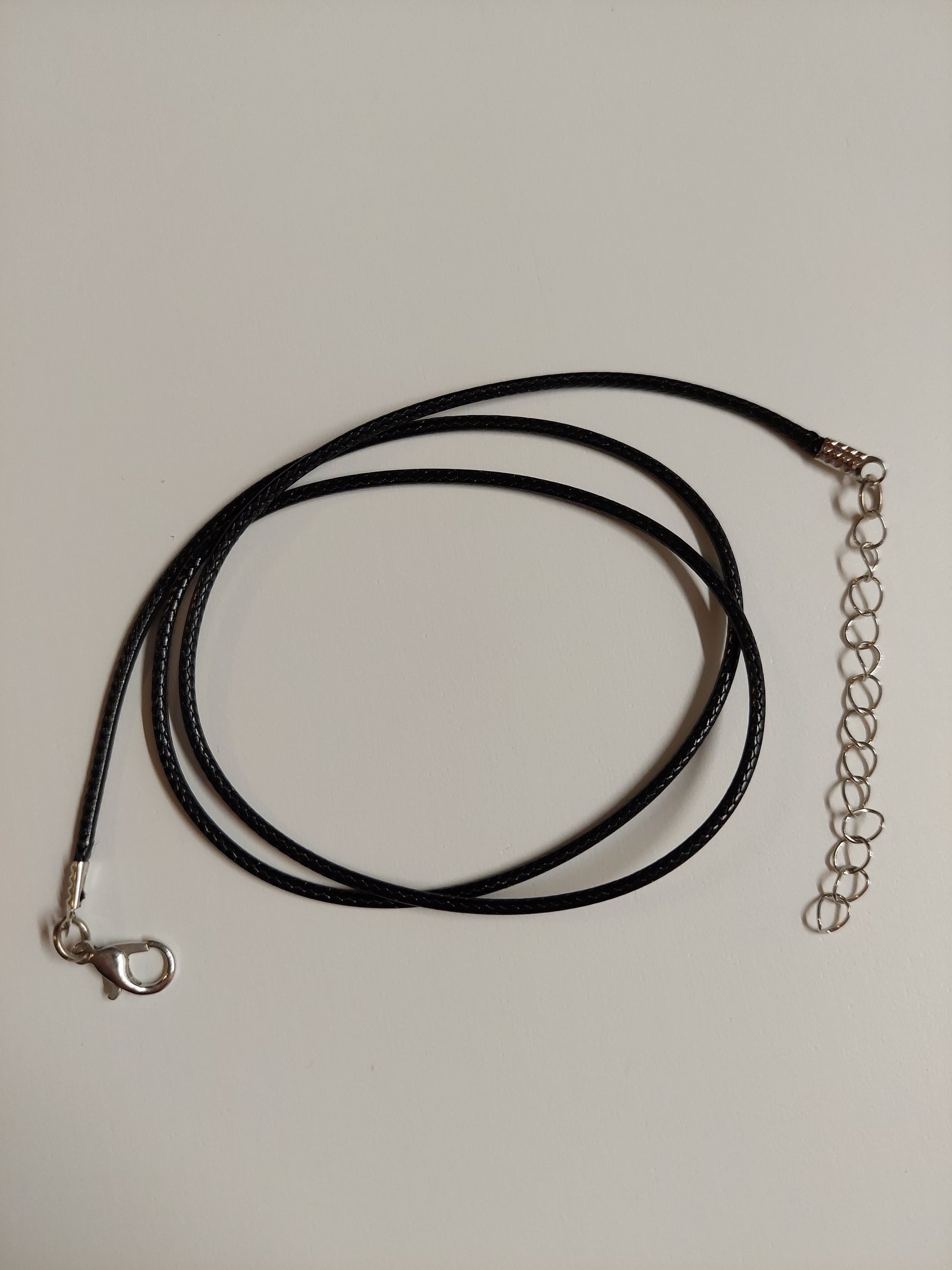 Schöner Steinpendel/Anhänger aus Rosenquarz mit versilberter Ranke, Stein ca. 5 cm lang, mit 55 cm gewachstem Baumwollbändeli mit Verschluss.
