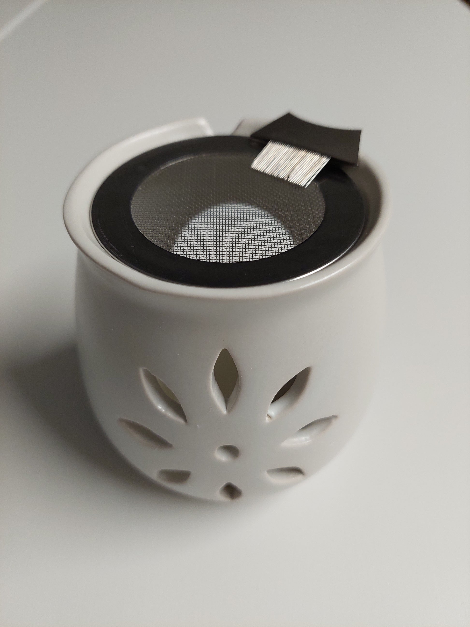 Du möchtest Kräuter verdampfen lassen aber magst den Rauch nicht? Dann empfehle ich dir dieses schöne Stövchen. Die Kräuter, Hölzer und Harze (Vorsicht Harze können das Sieb stark verunreinigen und sind kaum noch zu reinigen, eine Schicht Sand oder Alufolie hilft hierbei sehr) verdampfen und verströmen ihren Duft weniger intensiv als auf der Räucherkohle.