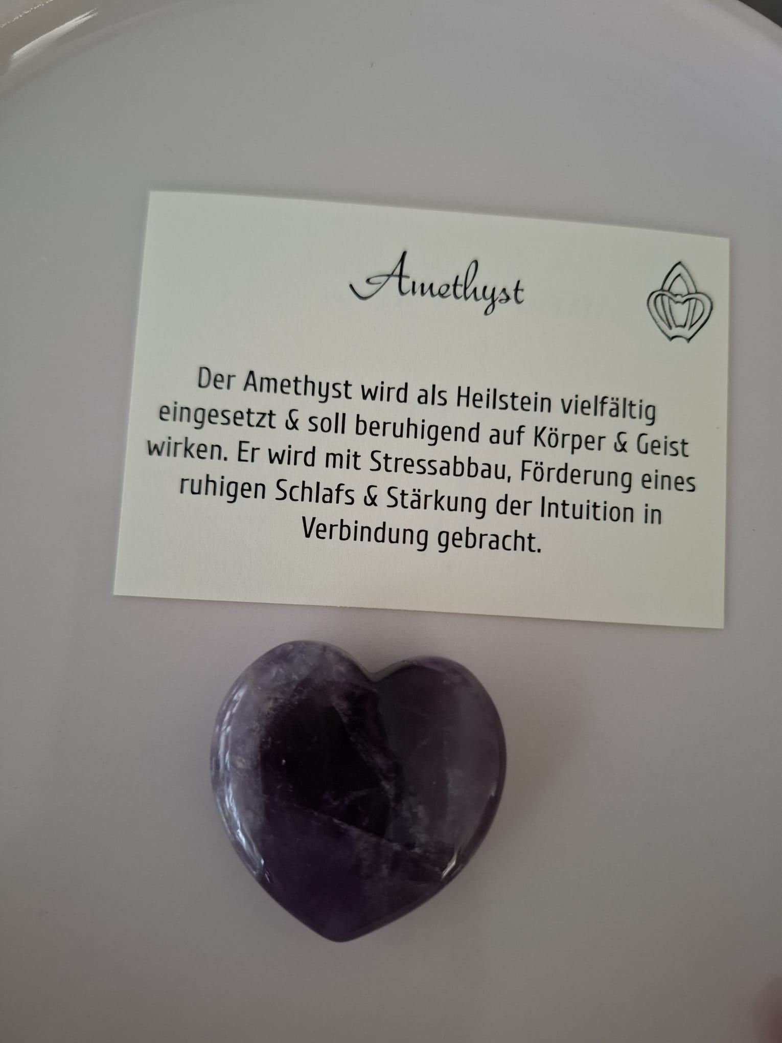 Achtung, es handelt sich hierbei um die Fotos des Musterstücks. Du erhälst ein Herz aus genanntem Kristall, dieses wird sich aber in der Färbung / Einschlüsse / etc. anders verhalten / ansehen, als dieses Muster. Jeder Heil- & Edelstein ist ein EINZELSTÜCK!