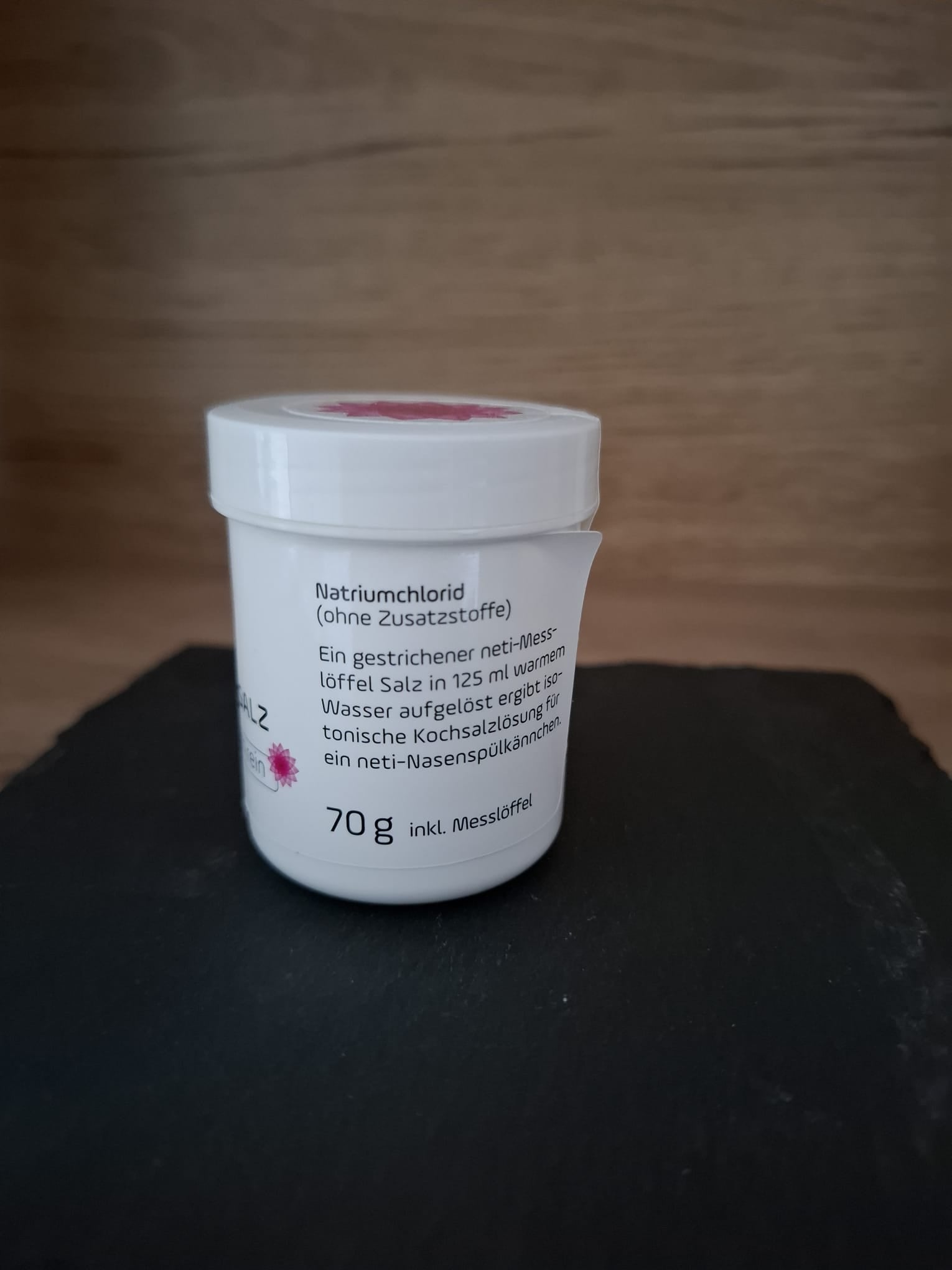 Dieses Neti®-Salz für die Nasenspülung ist von pharmazeutisch gereinigter Qualität. Es ist frei von organischen Bestandteilen und Zusätzen wie z.B. Jod, Fluor oder Rieselhilfen und somit auch für Allergiker geeignet.