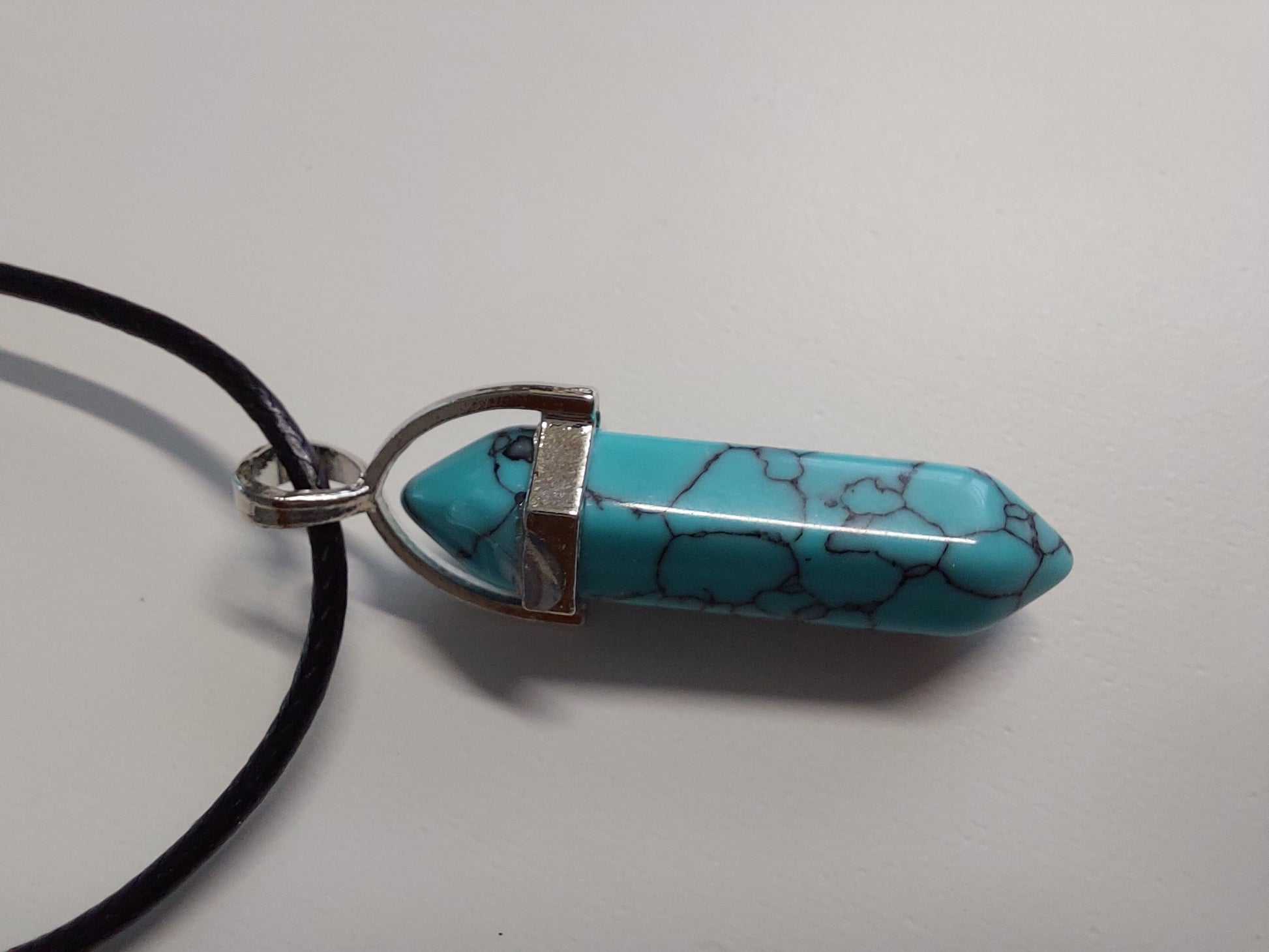 Schöner Steinpendel an 55 cm gewachstem Baumwollbändeli mit Verschluss.