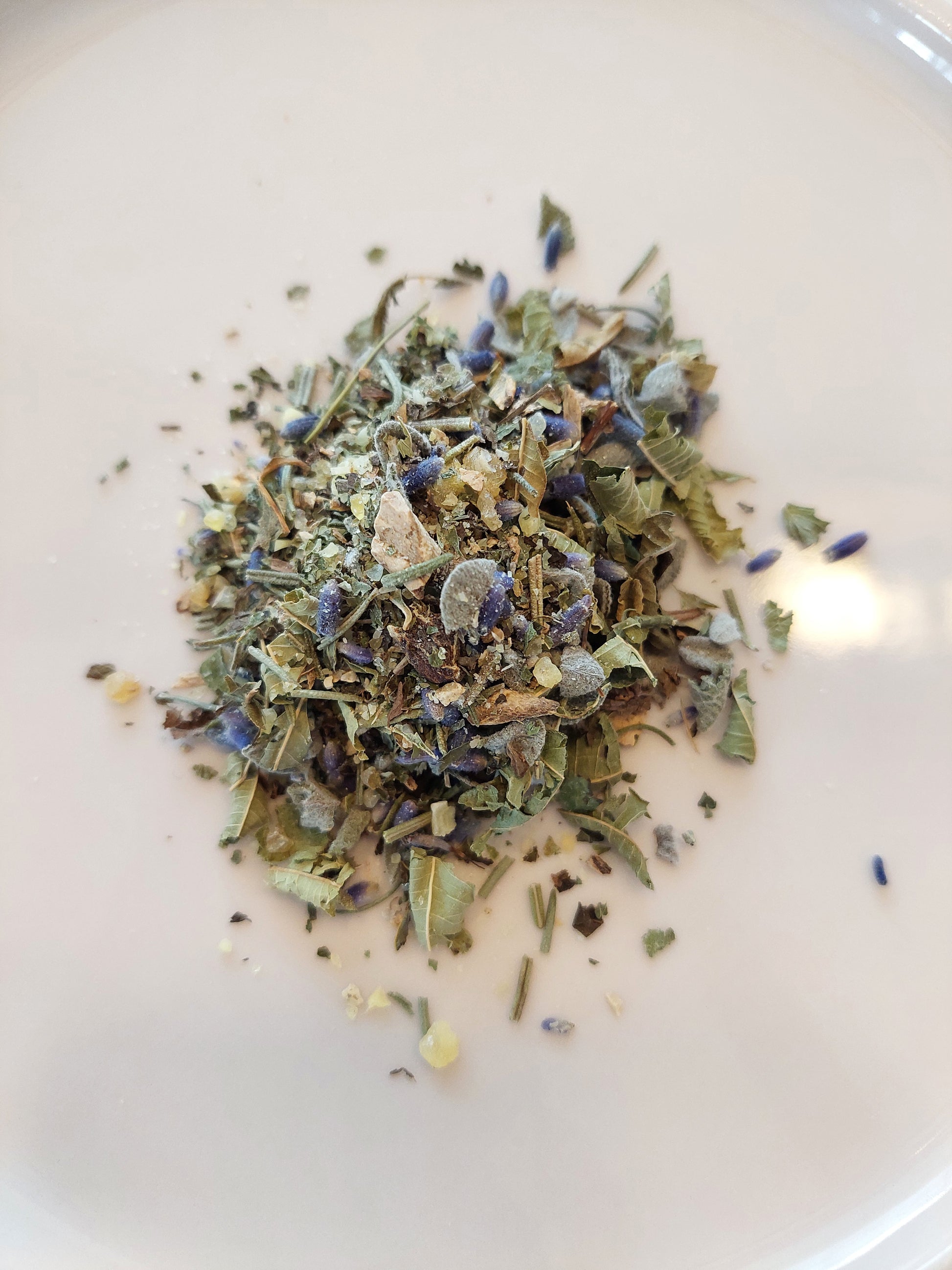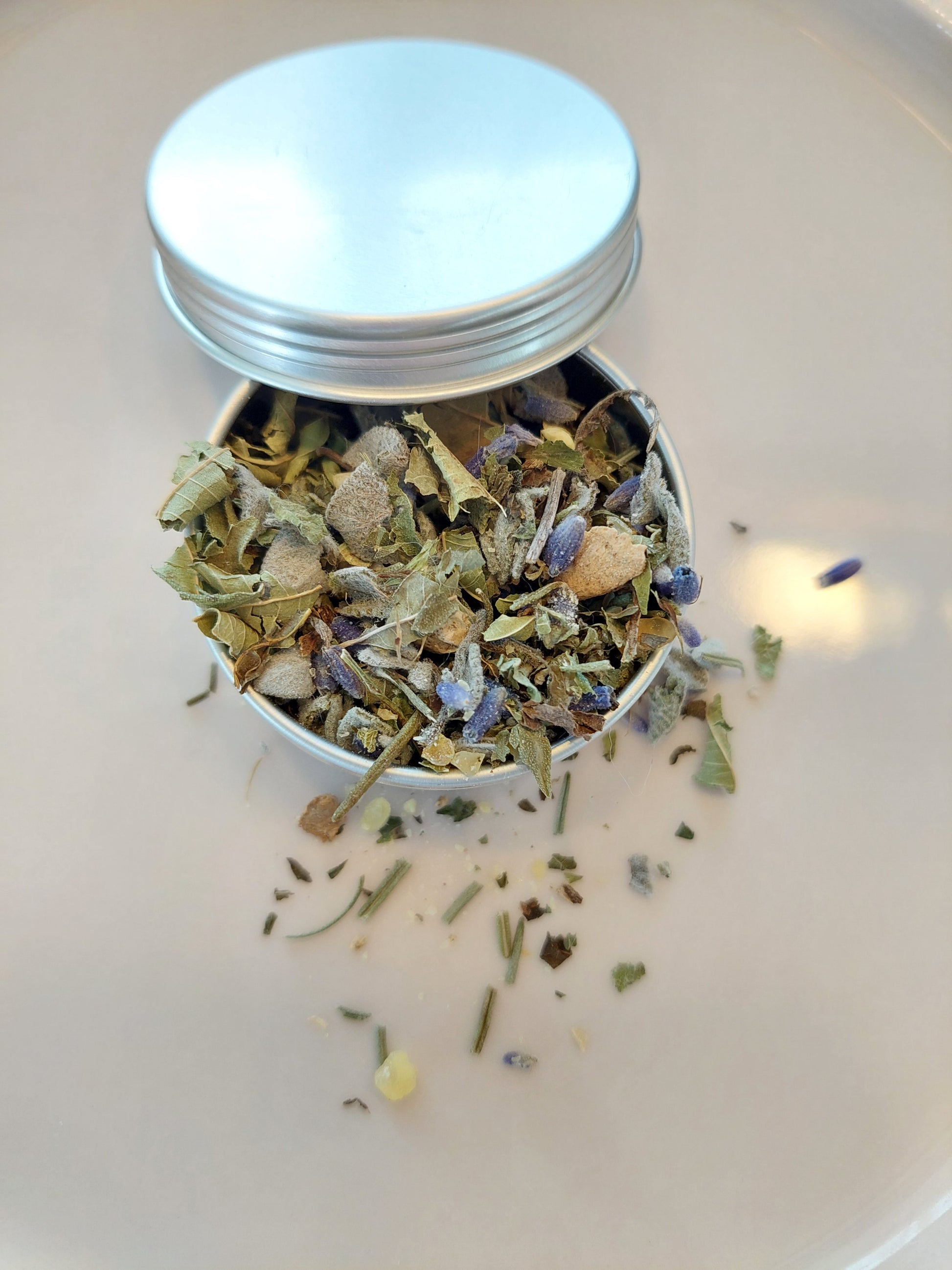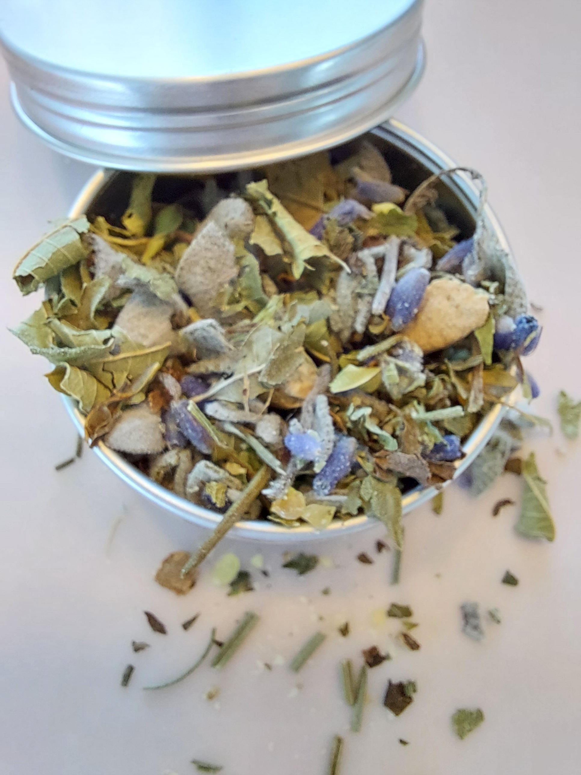 Enthält: Zitronenmelisse, Zitronenverbene, Lavendel, Alantwurzel, Salbei etc.