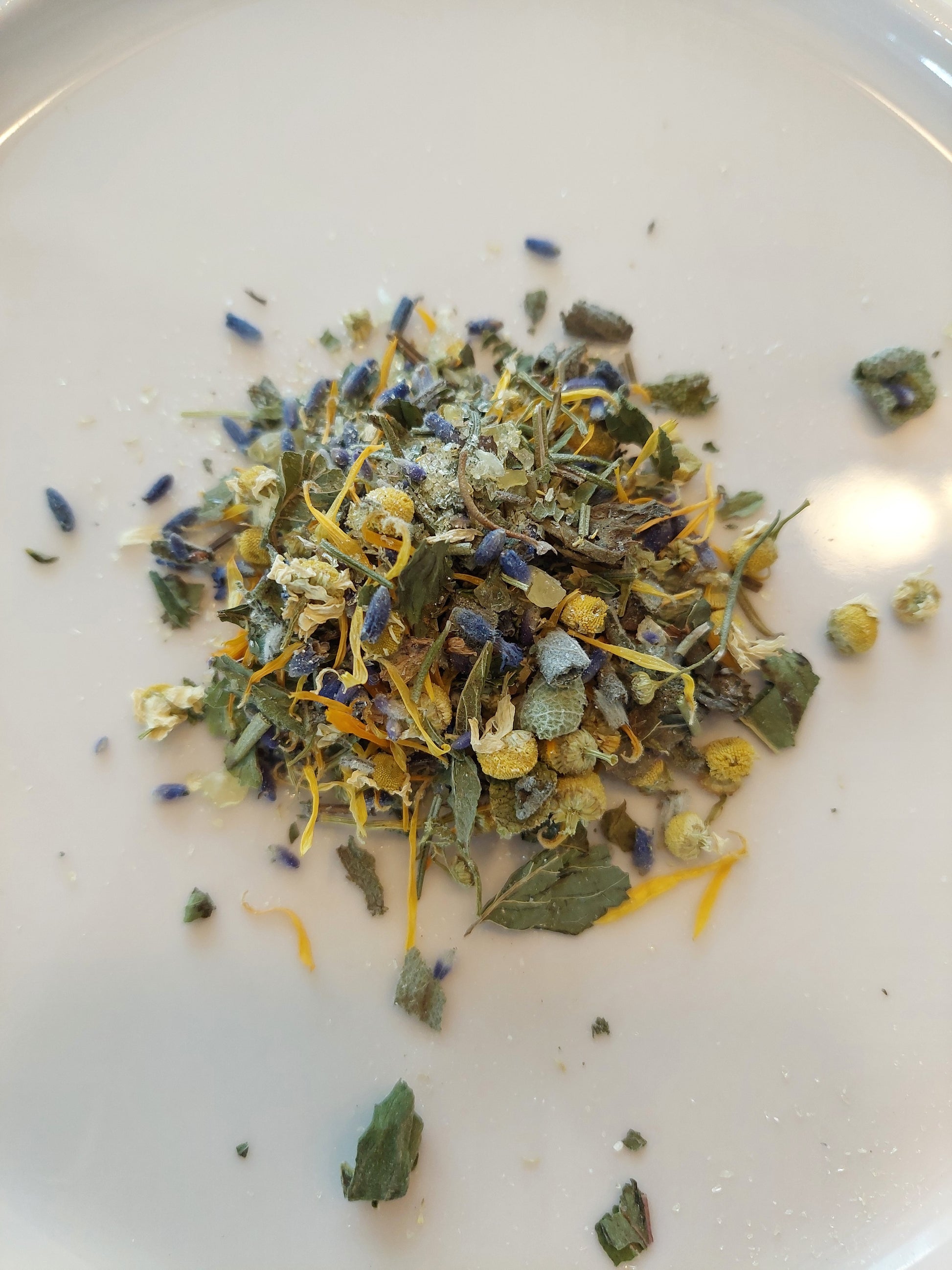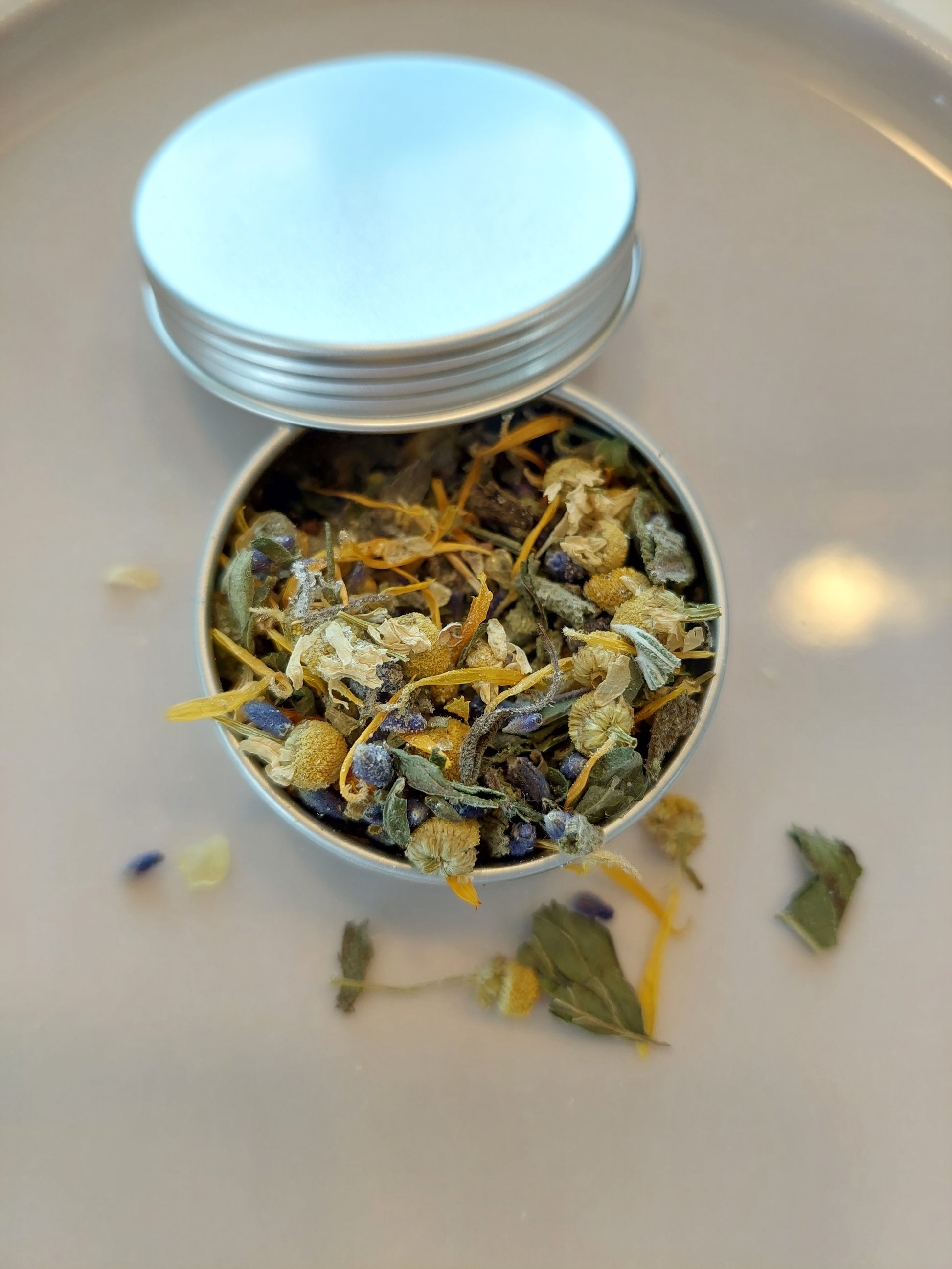 Enthält: Lavendel, Kamille, Rosmarin, Weihrauch, Fichtenharz, Ringelblume etc.