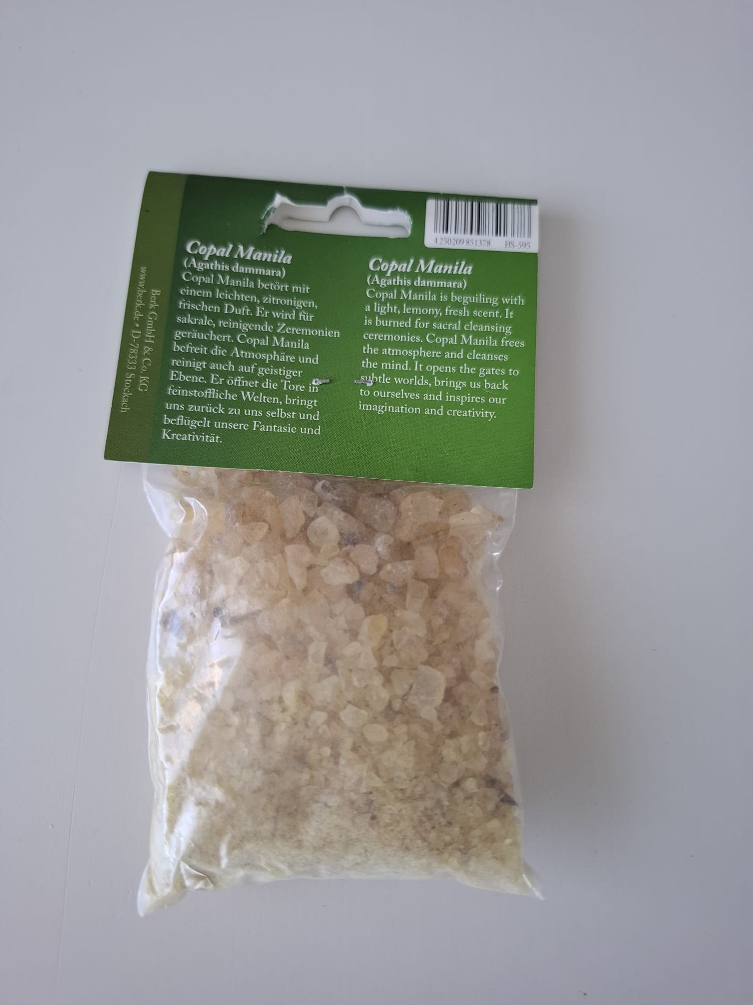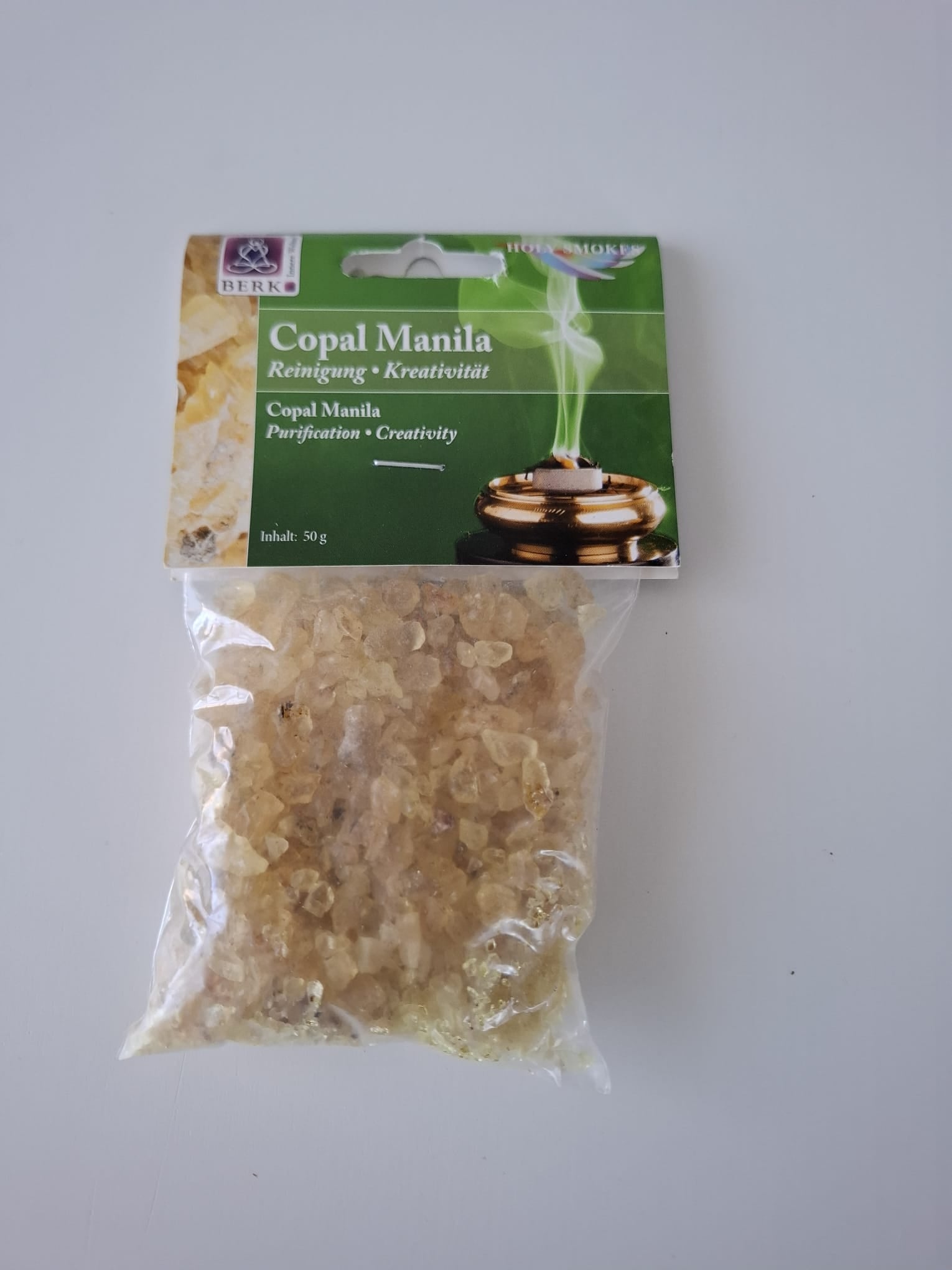 Jedes Räucherwerk wirkt auf verschiedenen Ebenen. Auf jedem Glas der Räucherwaren von Berk finden Sie eine ausführliche Anleitung. Die Hauptwirkung von Copal Manila ist Reinigung.