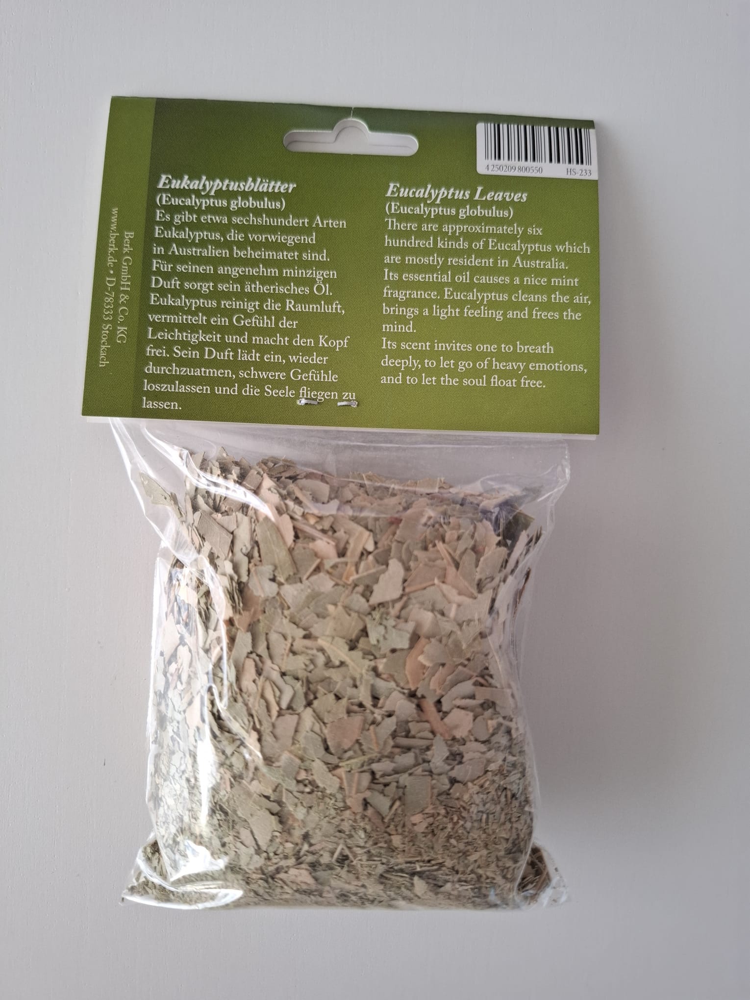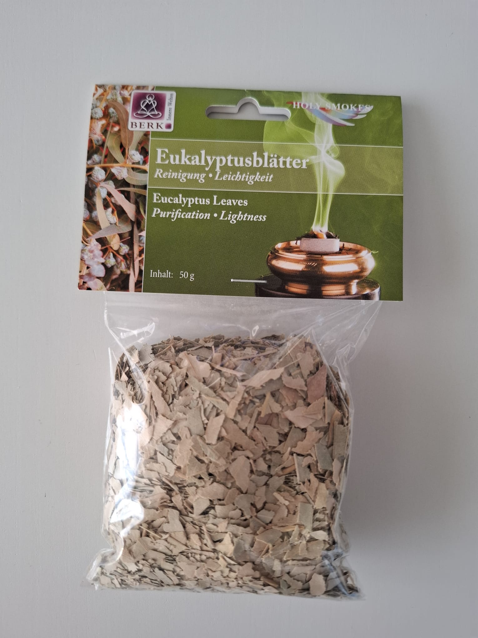 Jedes Räucherwerk wirkt auf verschiedenen Ebenen. Auf jedem Tütchen der Räucherwaren von Berk finden Sie eine ausführliche Anleitung. Die Hauptwirkung von Eukalyptusblätter ist Reinigung.