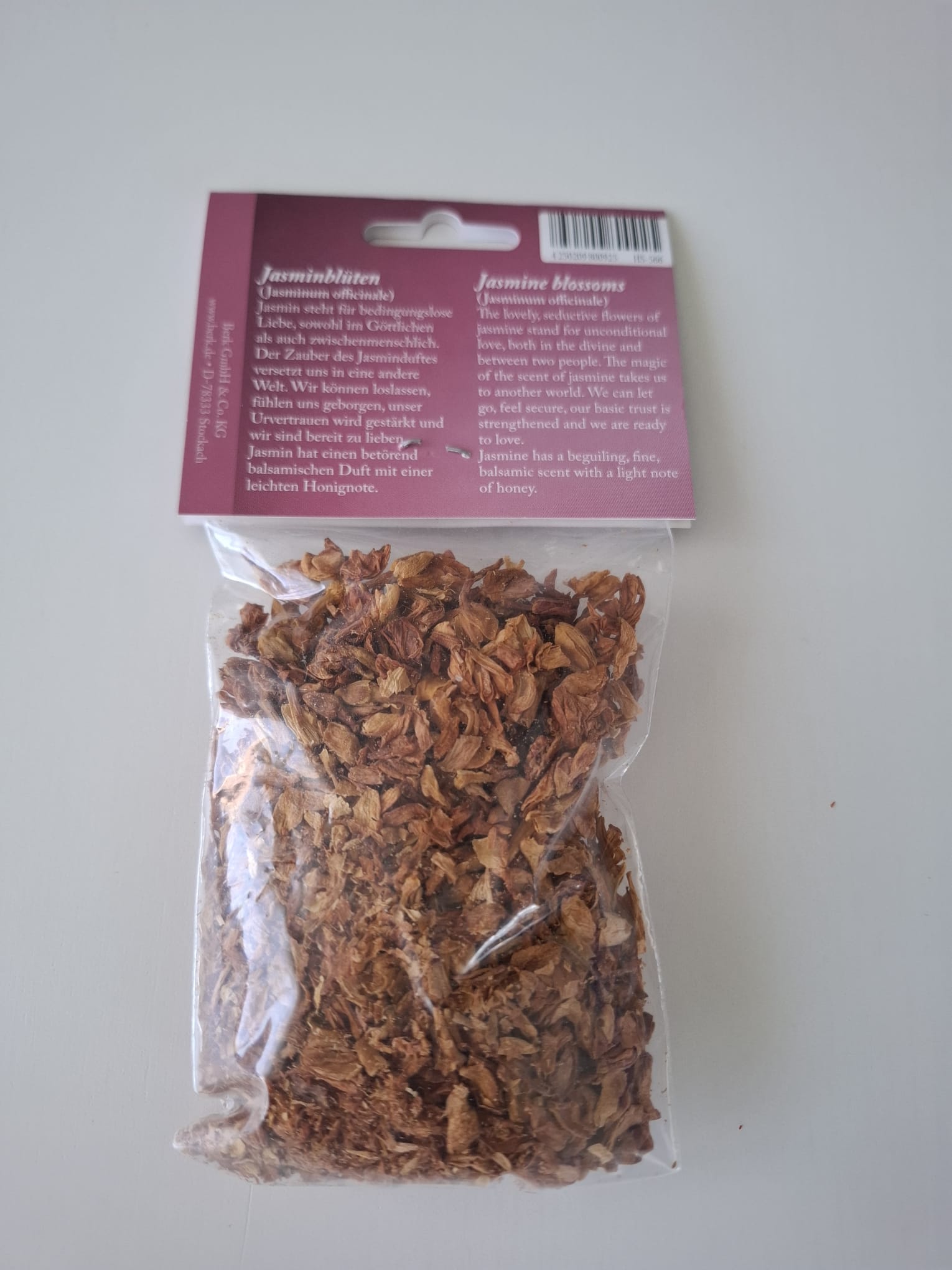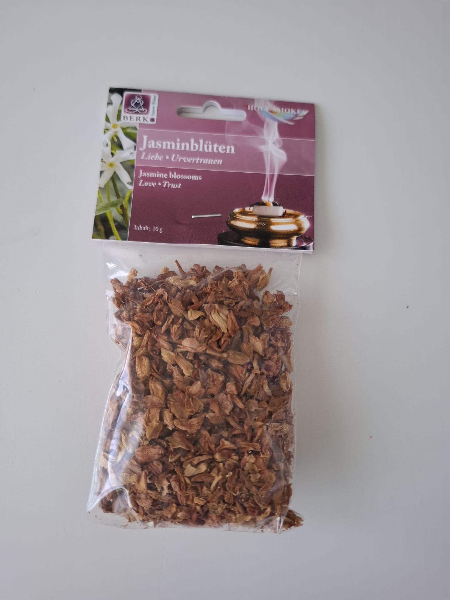 Jedes Räucherwerk wirkt auf verschiedenen Ebenen. Auf jedem Tütchen der Räucherwaren von Berk finden Sie eine ausführliche Anleitung. Die Hauptwirkung von Jasmin ist Liebe.