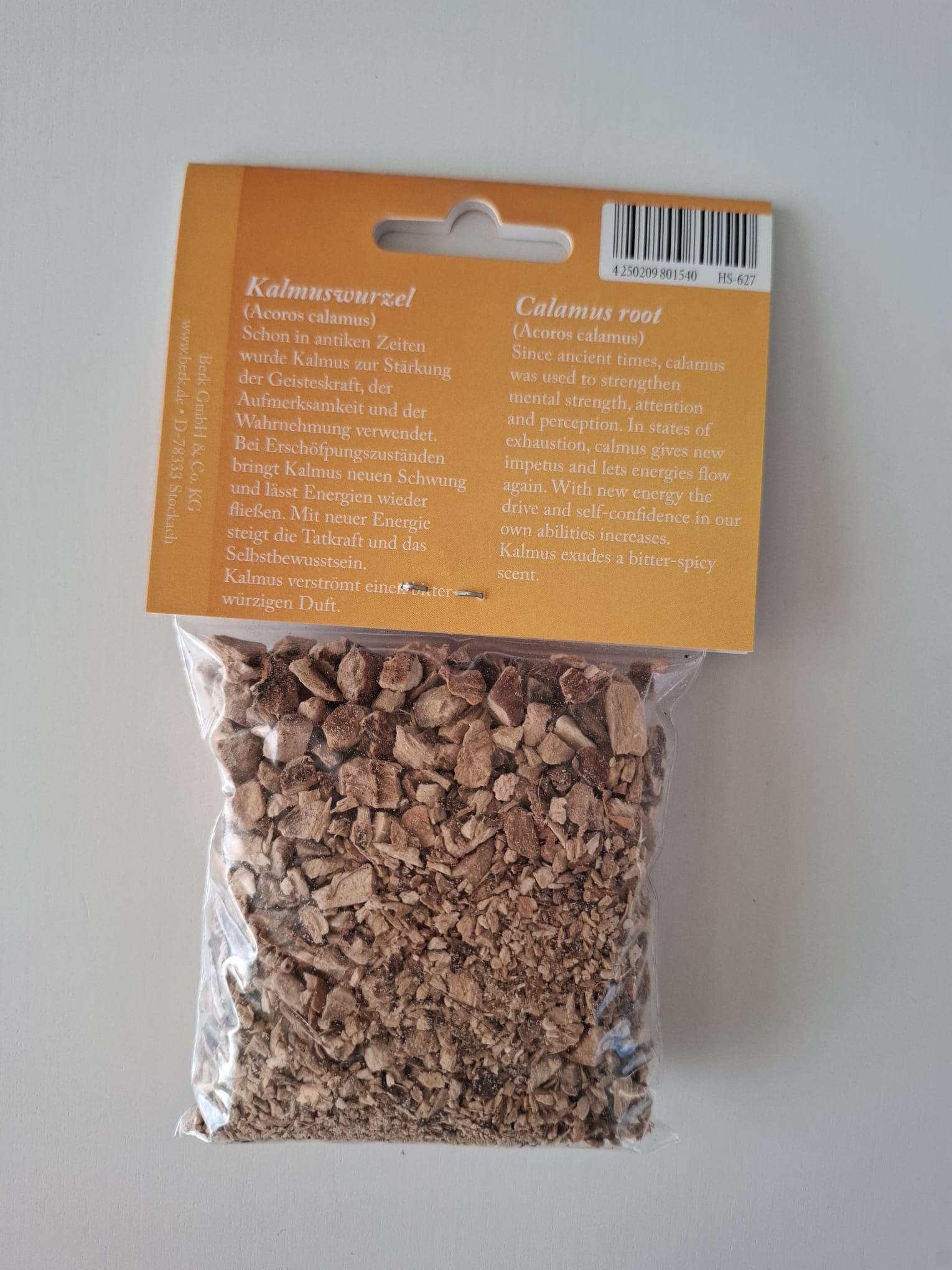 Jedes Räucherwerk wirkt auf verschiedenen Ebenen. Auf jedem Tütchen der Räucherwaren von Berk finden Sie eine ausführliche Anleitung. Die Hauptwirkung von Kalmuswurzel ist Konzentration.