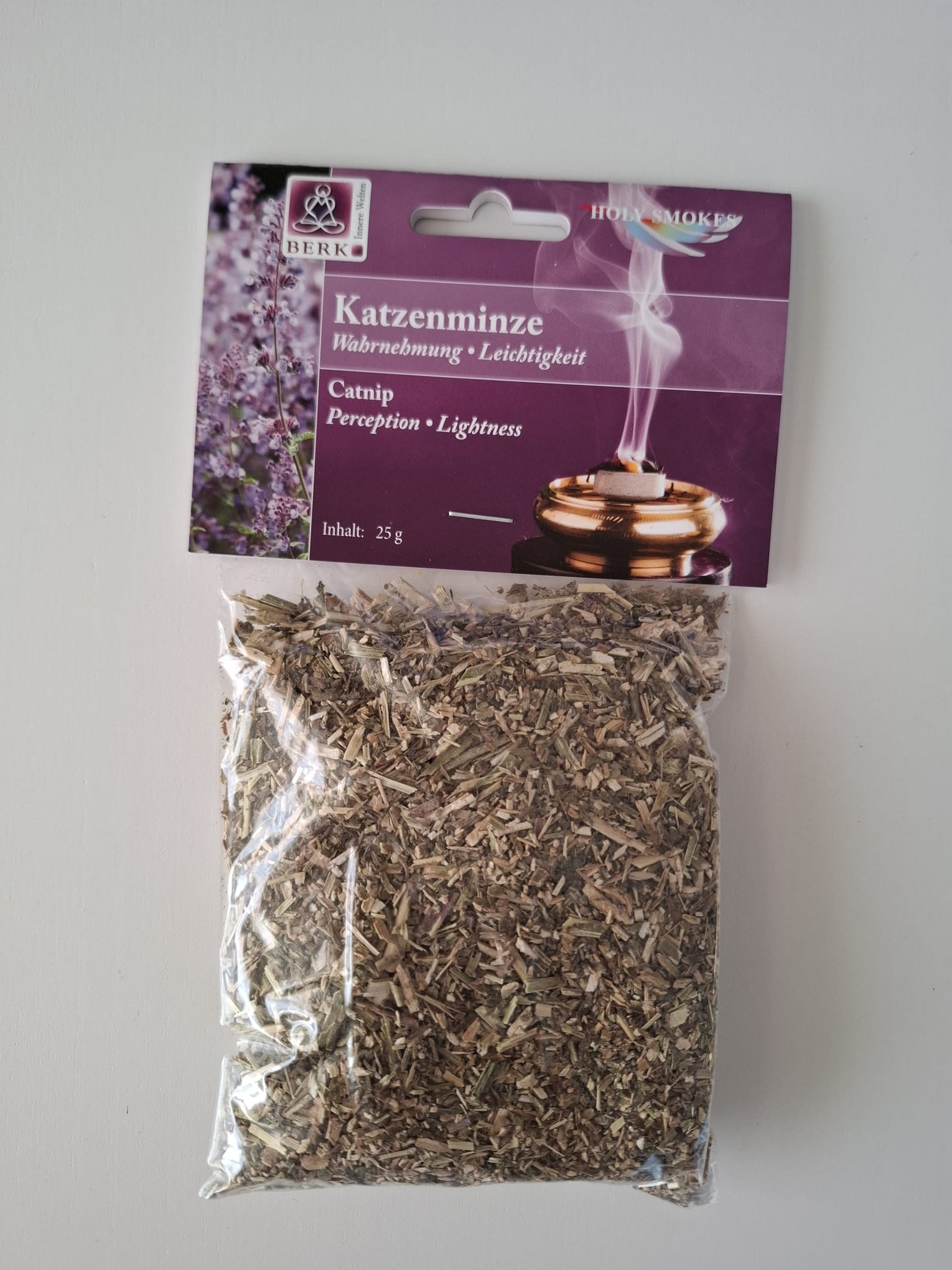 Jedes Räucherwerk wirkt auf verschiedenen Ebenen. Auf jedem Tütchen der Räucherwaren von Berk finden Sie eine ausführliche Anleitung. Die Hauptwirkung von Katzenminze ist Wahrnehmung.
