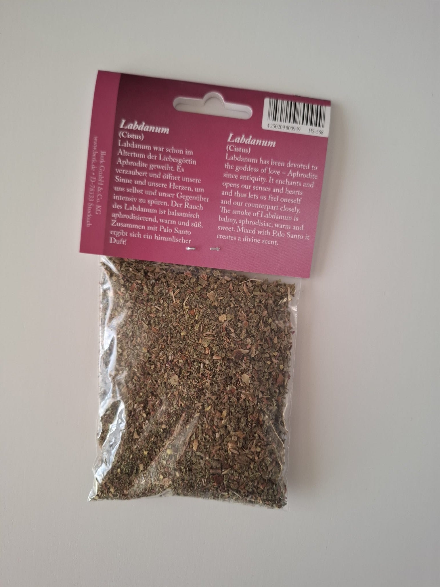 Jedes Räucherwerk wirkt auf verschiedenen Ebenen. Auf jedem Tütchen der Räucherwaren von Berk finden Sie eine ausführliche Anleitung. Die Hauptwirkung von Labdanum ist Liebe.