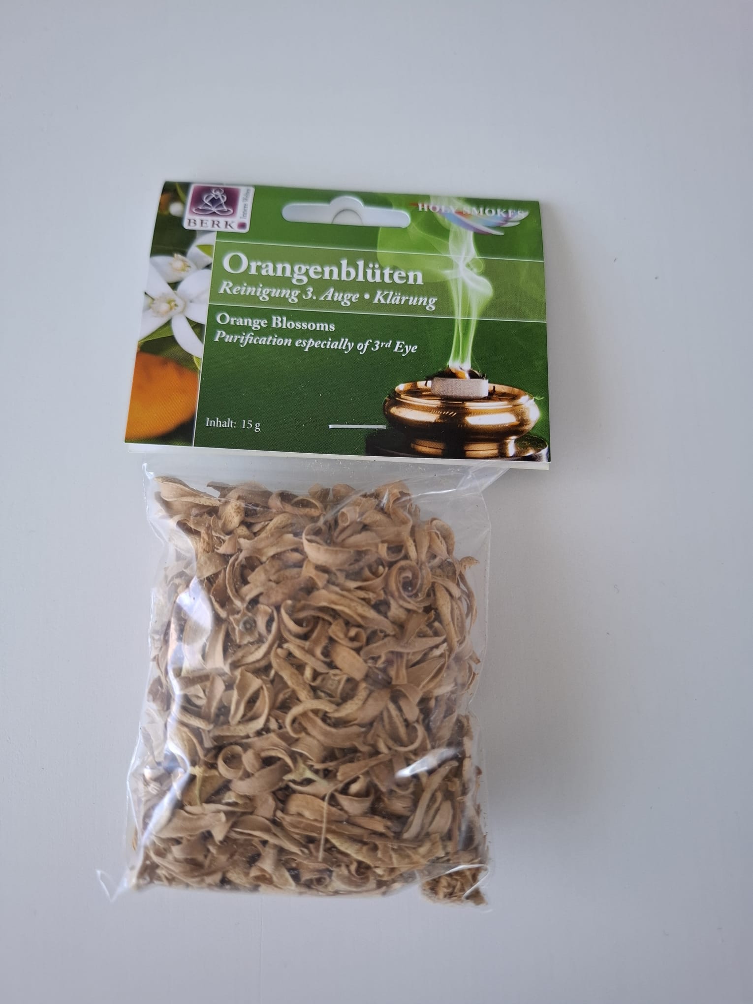 Jedes Räucherwerk wirkt auf verschiedenen Ebenen. Auf jedem Tütchen der Räucherwaren von Berk finden Sie eine ausführliche Anleitung. Die Hauptwirkung von Orangenblüten ist Reinigung.