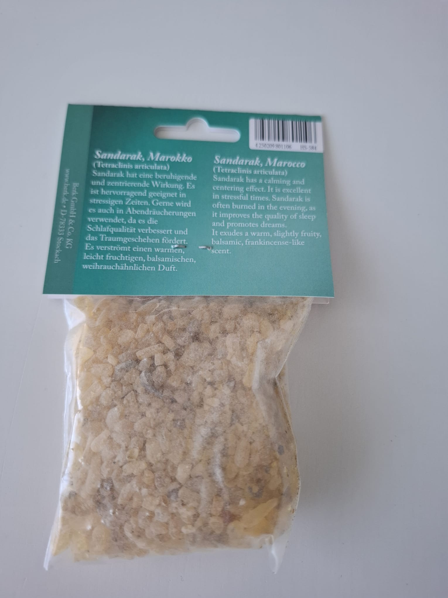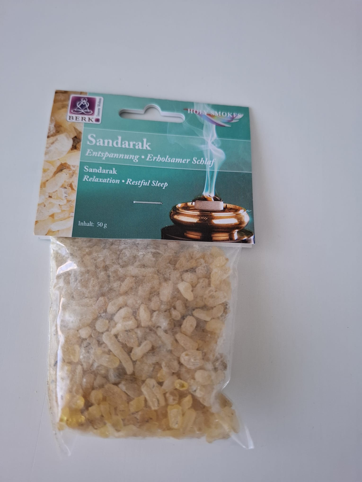 Jedes Räucherwerk wirkt auf verschiedenen Ebenen. Auf jedem Tütchen der Räucherwaren von Berk finden Sie eine ausführliche Anleitung. Die Hauptwirkung von Sandarak ist Entspannung.