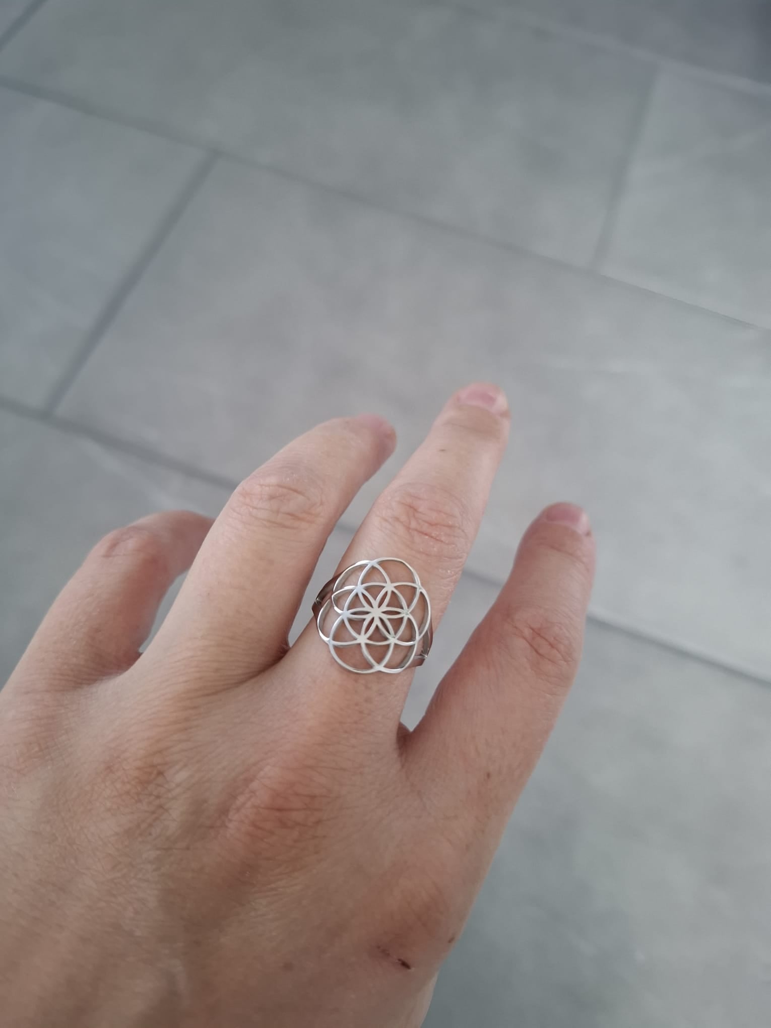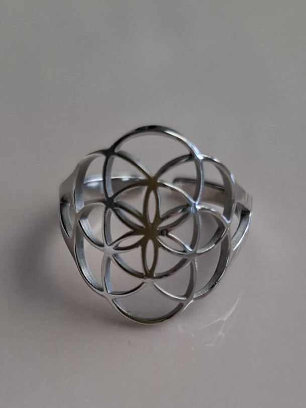 Ring aus Edelstahl mit dem Motiv "Samen des Lebens". Zeitloses und elegantes Design, langlebig und perfekt für jeden Anlass.