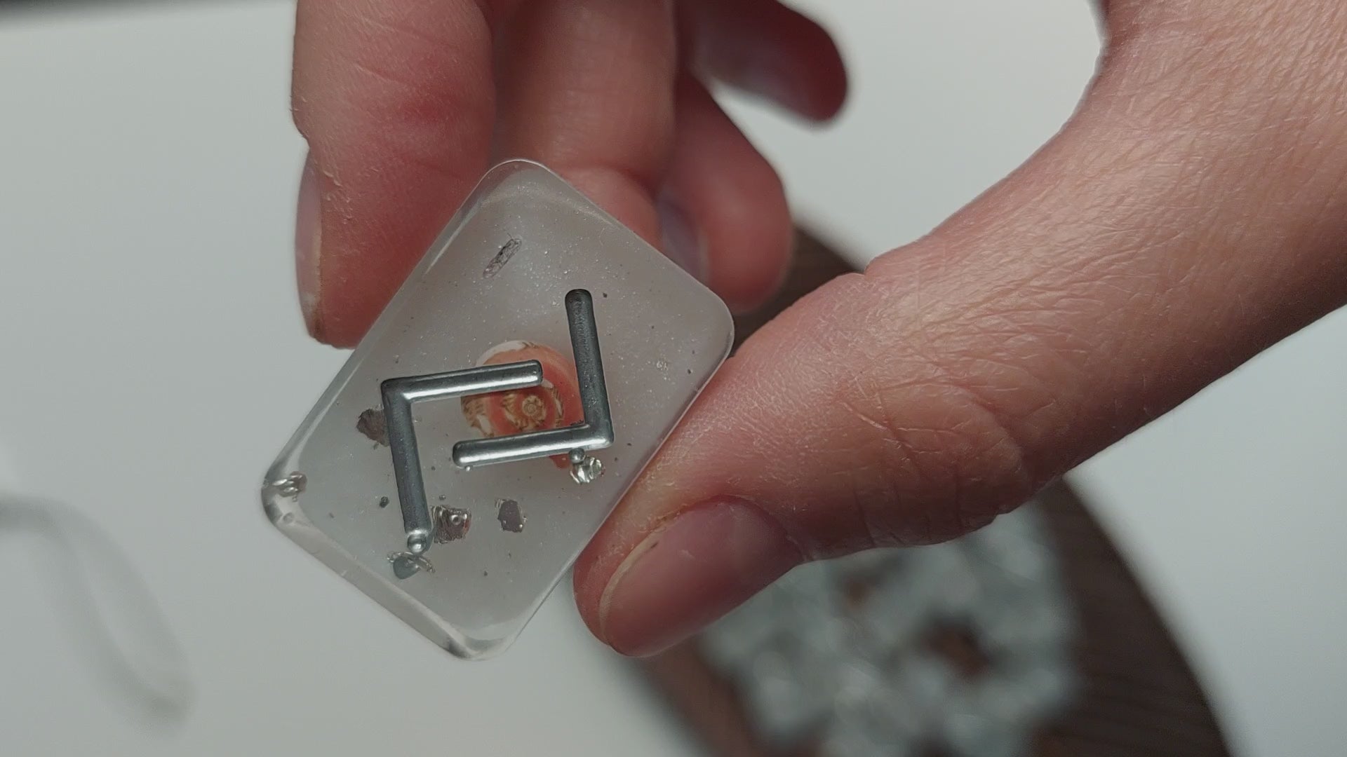 Die Runen werden in zwei Vorgängen gegossen, um eine optische Tiefe zu erhalten durch die verschieden eingefärbten Harze.