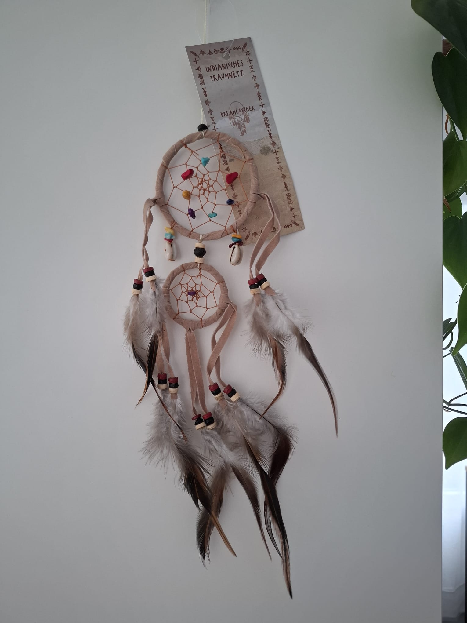 Traumfänger mit Edelsteinen und Kaurimuscheln Leder 25 cm (natur)